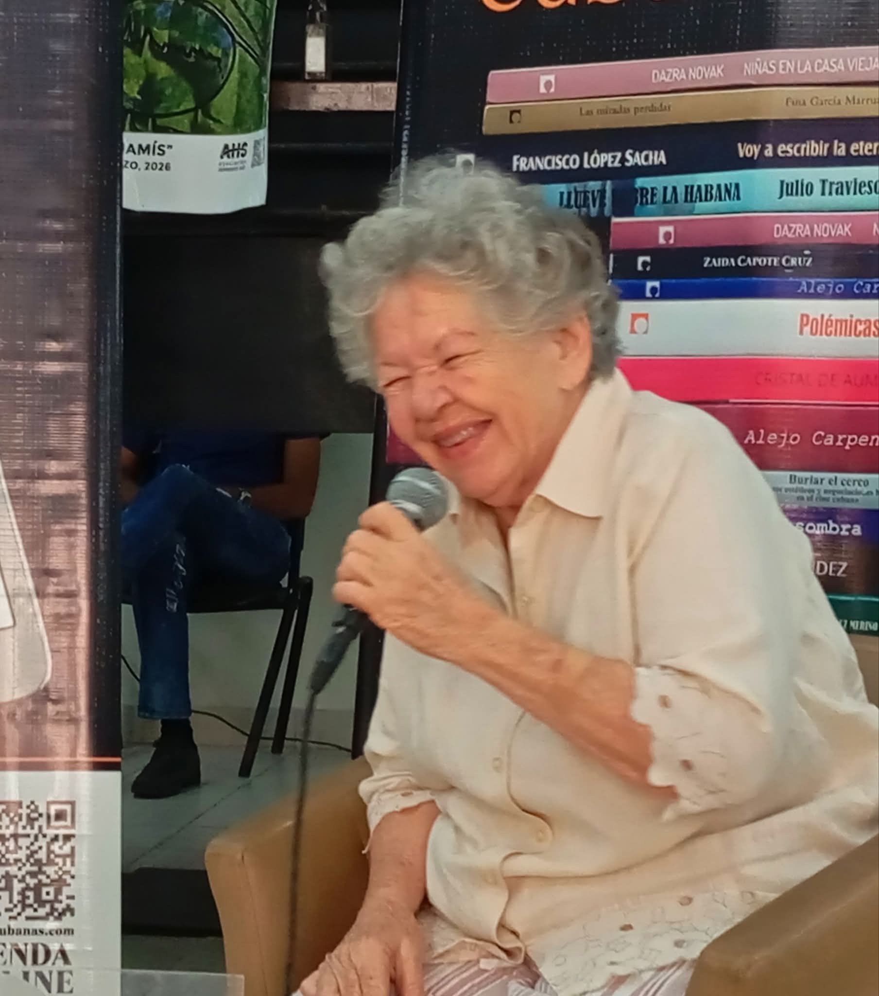 F. R. S.: Ya casi concluye este espacio, el Jubileo de Letras Cubanas, que hoy te hemos dedicado a propósito de tu aniversario. Tengo dos preguntas para ya cerrar este encuentro aquí en la librería Fayad Jamís. La primera: hoy que estás de cumpleaños, porque precisamente hoy se celebra, ¿te sientes una mujer realizada?