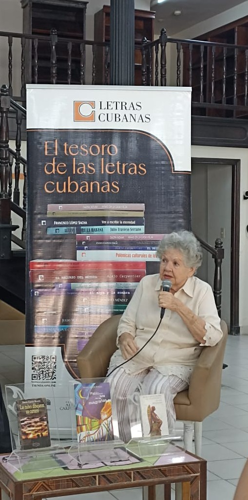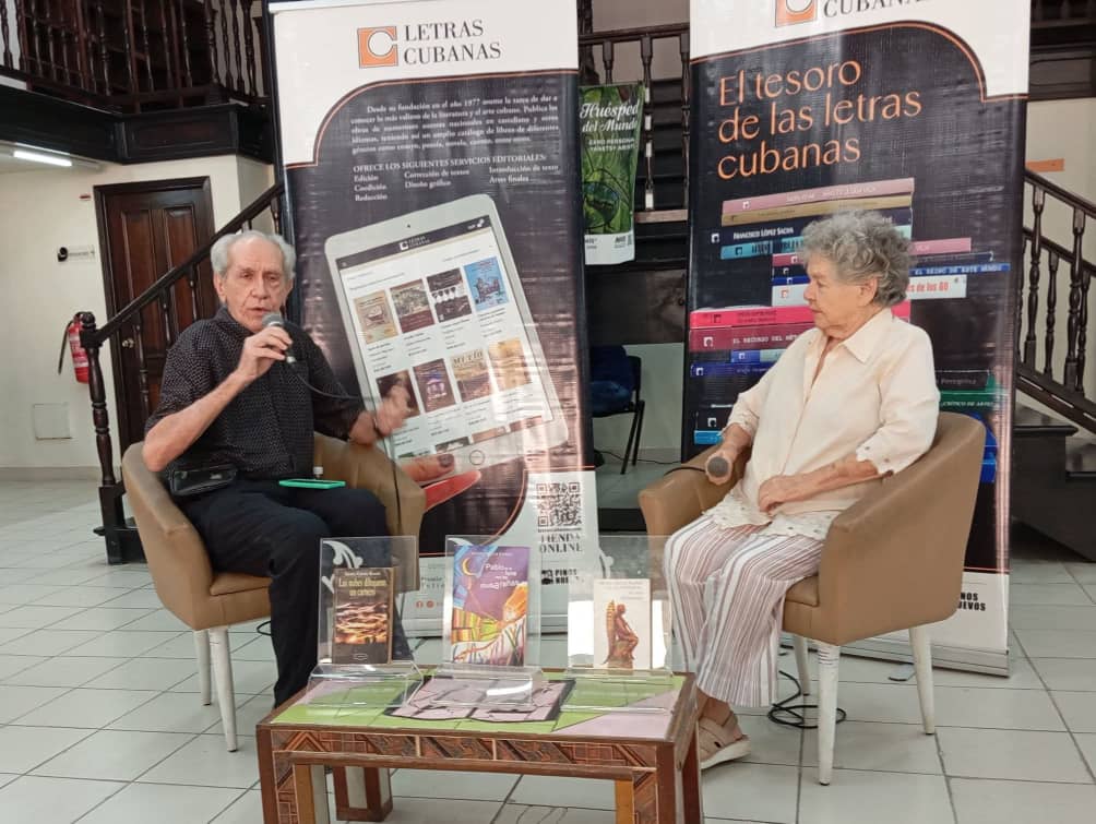 Denia García Ronda (D. G. R.): Muchas gracias. Y gracias por invitarme. Realmente es una gran satisfacción en el día de mi cumpleaños. De manera que le agradezco a Letras Cubanas, al Instituto del Libro en general, a ti que tienes este espacio y que, además, nos conocemos y nos apreciamos hace tanto tiempo. Seguramente sugeriste mi nombre para esta actividad. De manera que lo que tengo que decir en este momento, en primer lugar, es gracias. Porque realmente es algo que conmueve que se acuerden de uno y que reconozcan lo poco que uno ha podido hacer por la cultura.
